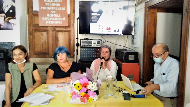 Kuşadası Mübadele Evi'nde, 20 Ekim Çarşamba günü, saat 15:00'de başlayan toplantının konuşmacıları Selvar Savran, Belma Özgün ve Zeynep İnak idi.