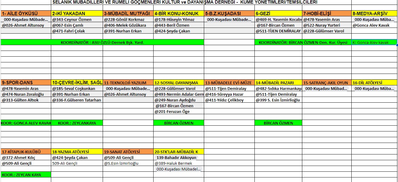 Asu Özlü (YK. Bşk. Yard.), Gonca Alev Kavak (YK. Üyesi) Bahadır Akkoyun (YK. Üyesi) Bircan Özmen (Den. K. Üyesi) ile Zeycan Kaya (Dernek Üyesi) belirli küme ve atölyelerin koordinasyonuyla görevlendirildi.